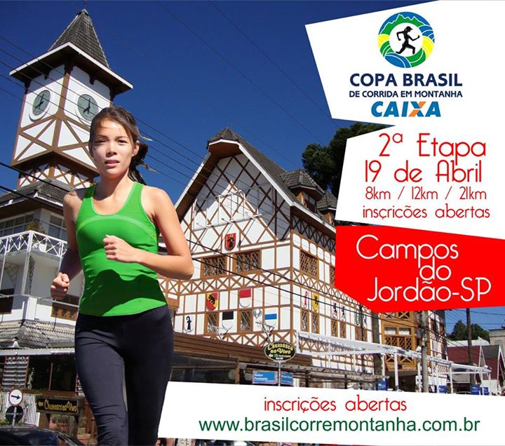 Estão abertas as inscrições para os interessados em correr a 2º Etapa da Copa Brasil de Montanha, que será realizada no dia 19 de abril em Campos do Jordão. A prova possui dois percursos: o curto, de 8 km para mulheres e 12 km para homens e o longo, com 21 km para as duas categorias.